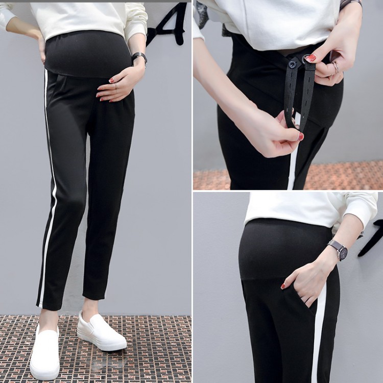 3095 pantaloni casual a nove punti con cappuccio diviso e vita alta
