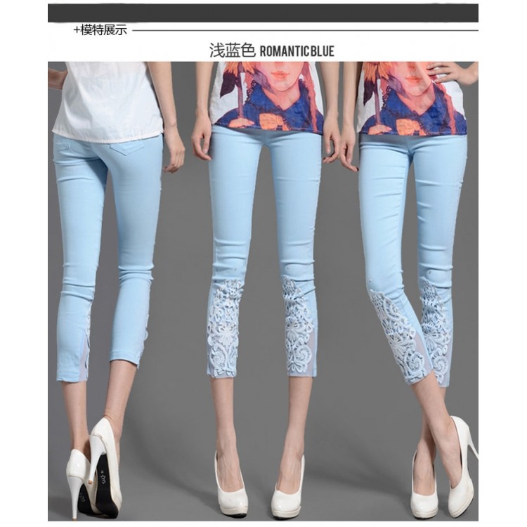 TE730 Leggings sottili estivi in pizzo all’uncinetto con strass