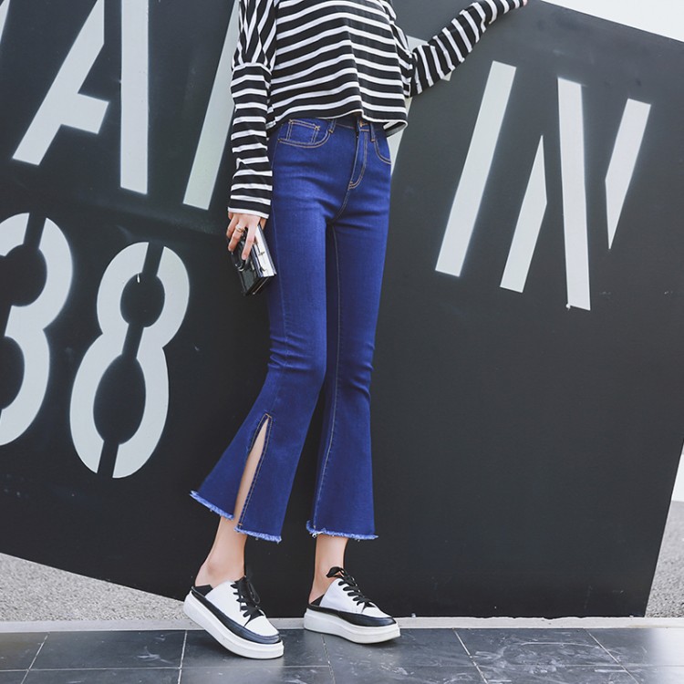 6609 pantaloni nove punti in denim stile preppy a gamba larga
