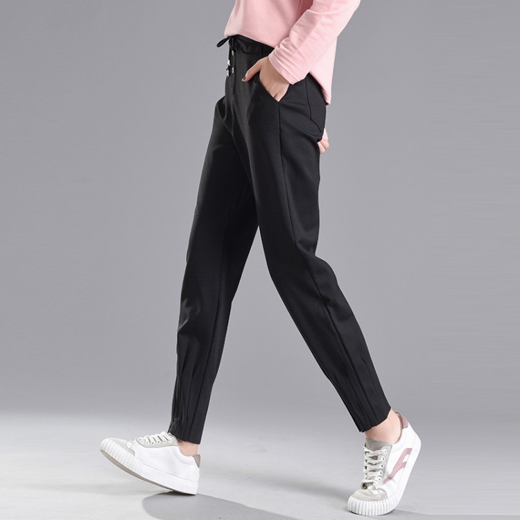 Pantaloni casual in tinta unita per il tempo libero con barra bianca a vita alta 1300 CHIC