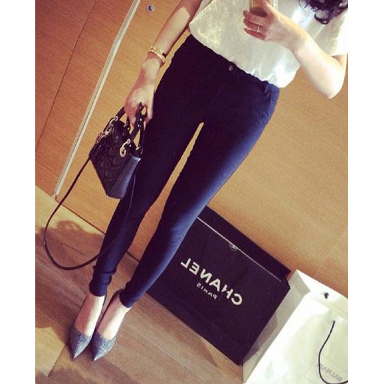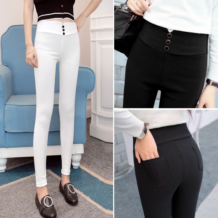 8809 leggings a matita elasticizzati a vita alta in pizzo