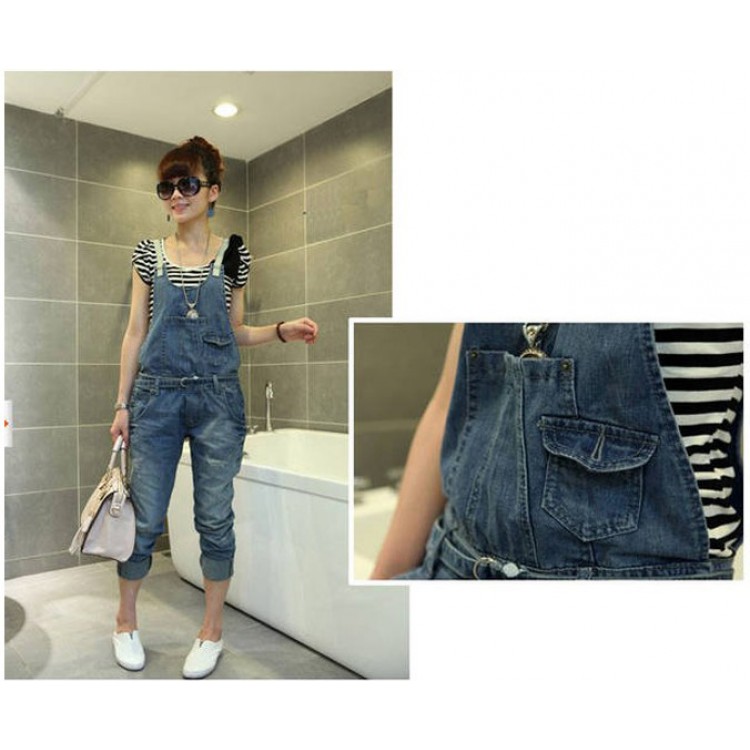 J74769 Bellissimi pantaloni con bretelle in denim sottile