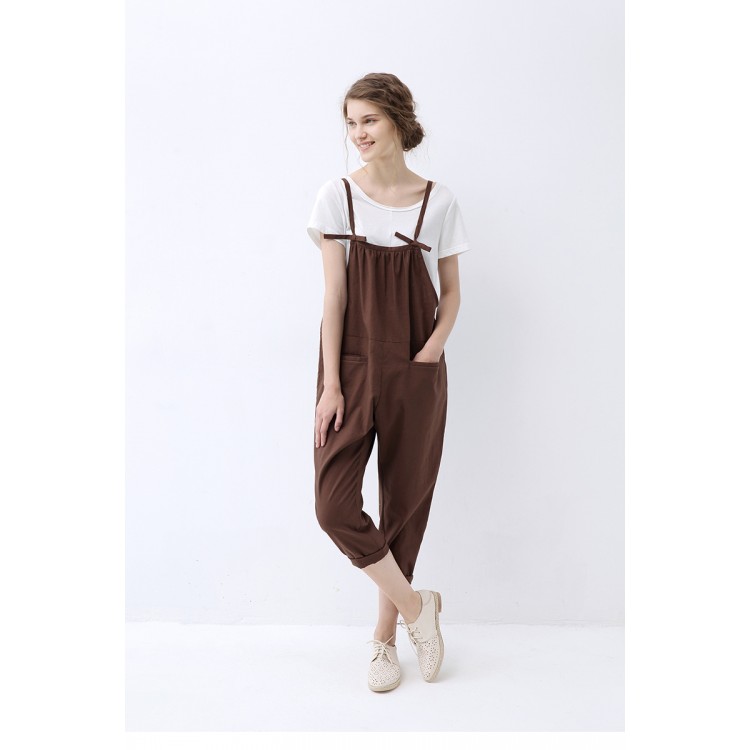 TE1054LYF Salopette casual da nono semplice in ramiè di cotone