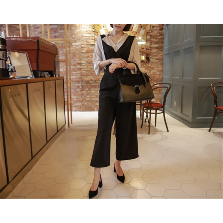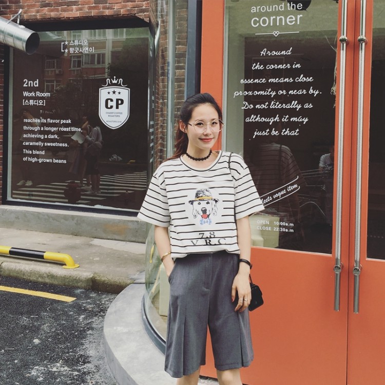 TE5268QBY Pantaloni mezzi lunghi a gamba larga in vita stile impero coreano di nuovo stile