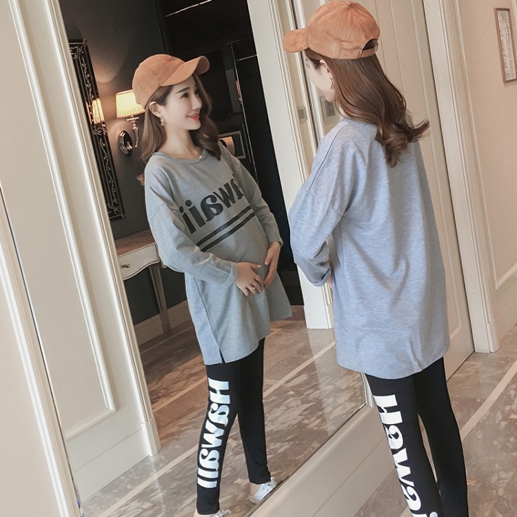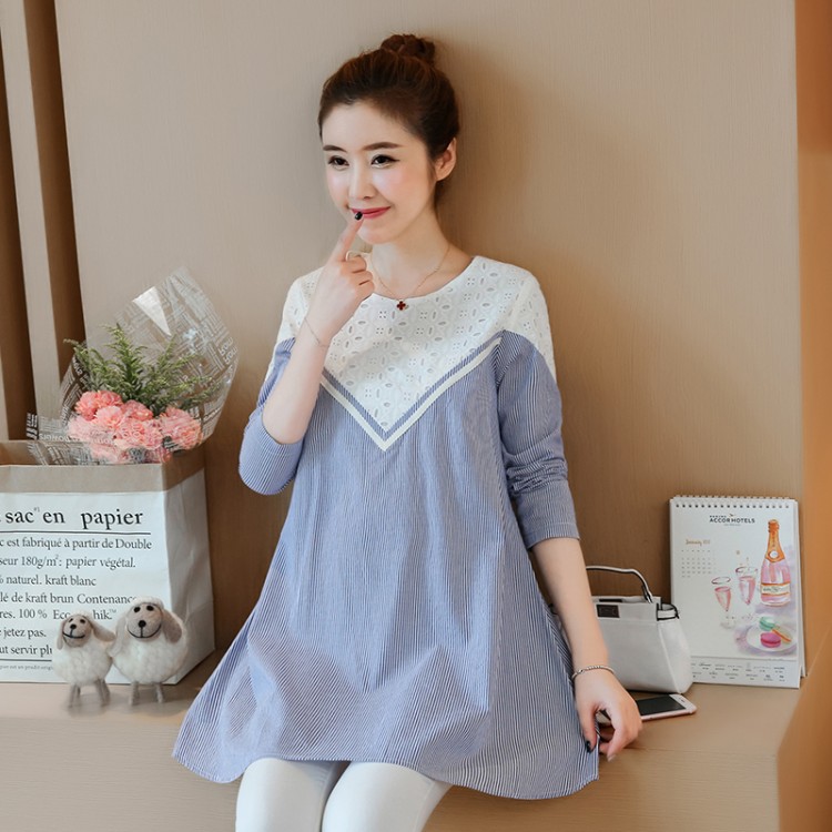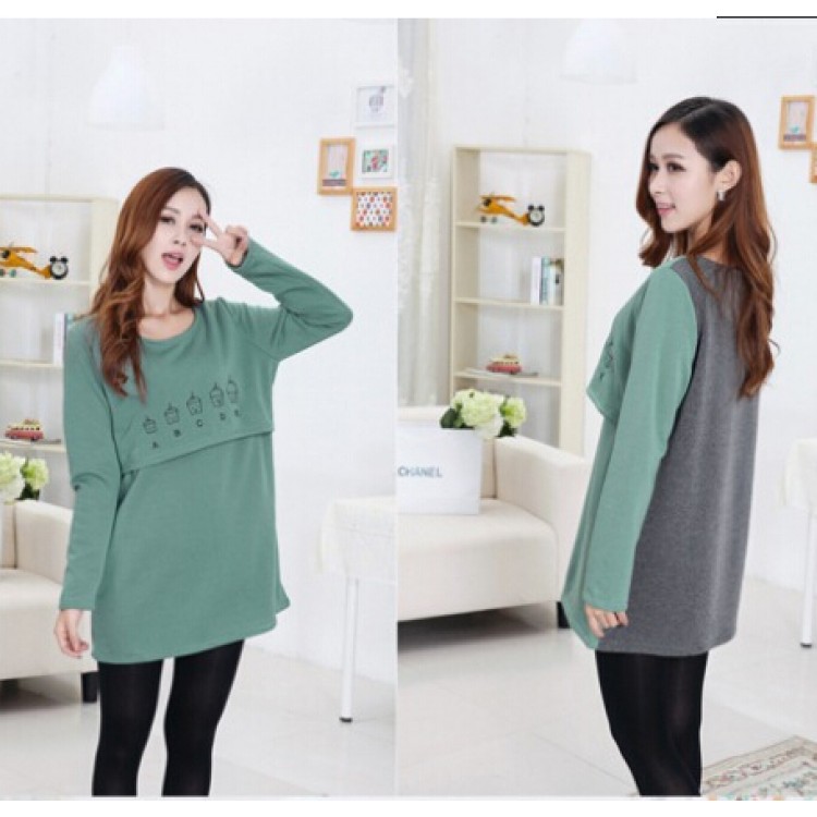 T-shirt premaman 518 a maniche lunghe con abito a foglia di loto