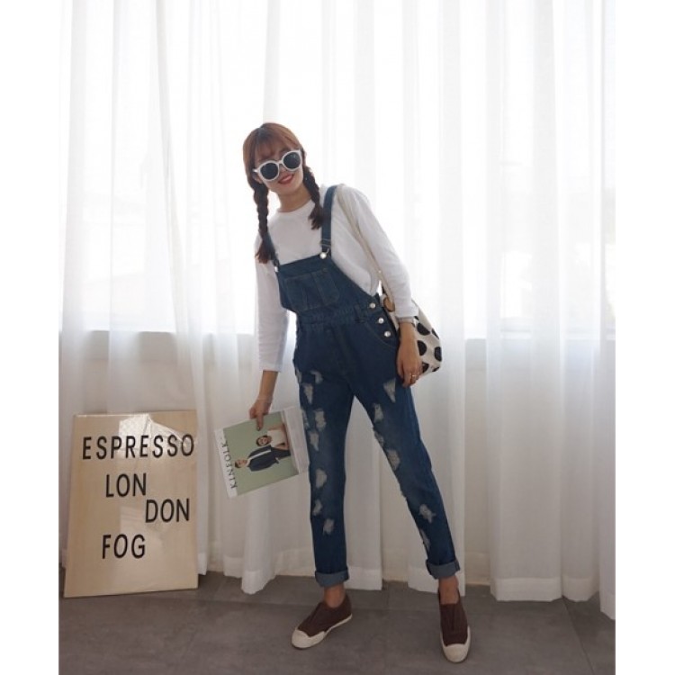 TE1161DXE Salopette in denim ampio con buchi in stile giapponese