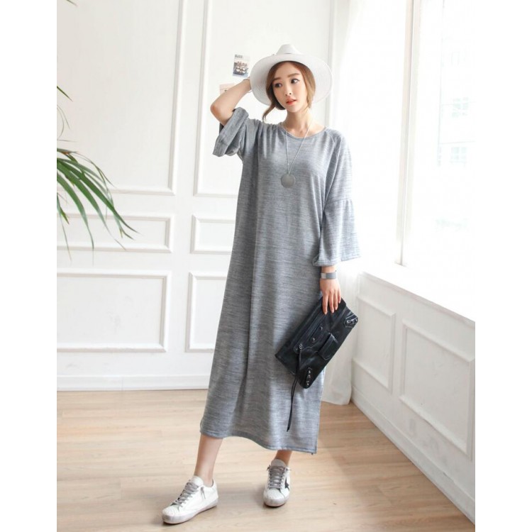TE6552YZS Maxi abito casual ampio con orlo a fessura