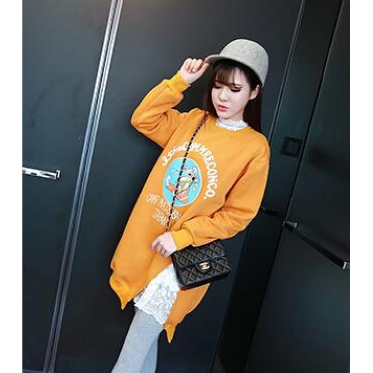 TE8942JYFS Felpa lunga con fodera in lana con stampa lettere cartoon e spacco laterale