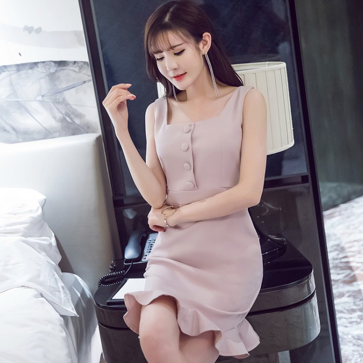 TE6107QQWL Abito gilet aderente a coda di pesce con balze slim