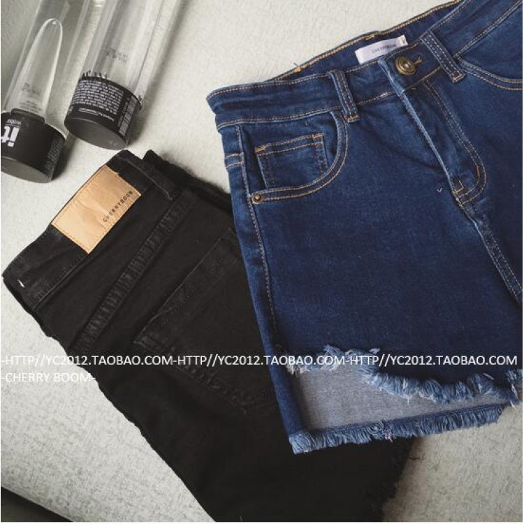 TE5147DDFS Shorts in denim stile impero slim con taglio ruvido e moda coreana
