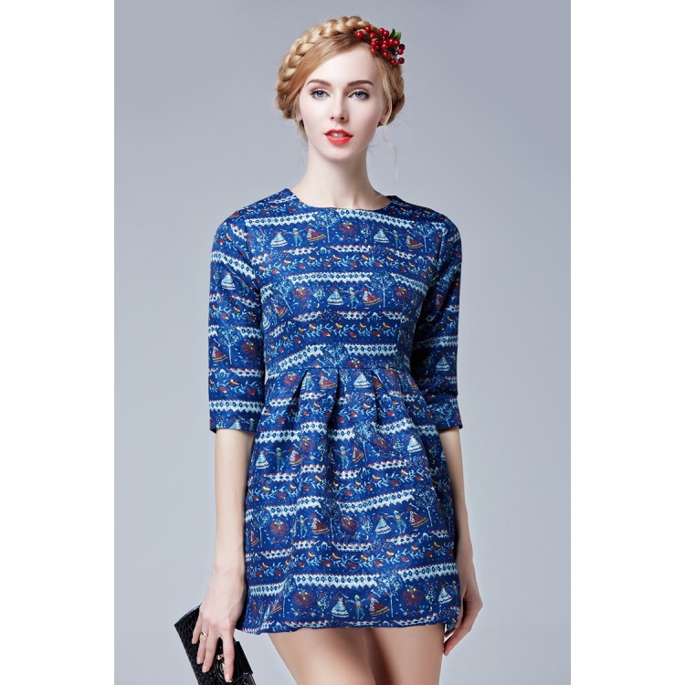TE3388WYN Abito sexy con gilet aderente sui fianchi con stampa in porcellana blu e bianca