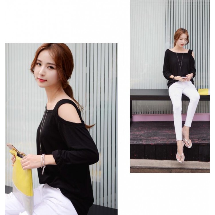 TE6555YZS T-shirt sexy a maniche lunghe color caramello con un lato e spalle scoperte