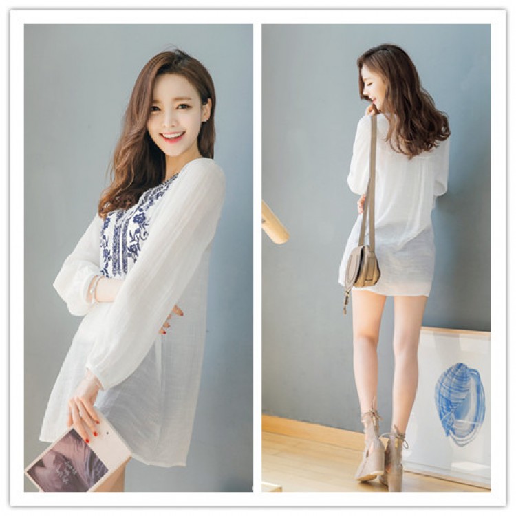 TE1394GJ Camicia lunga casual con scollo a V ricamata alla moda giapponese