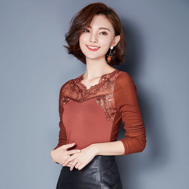 TE3010WSSP Camicia con supporto in fodera di lana con giunture in pizzo a rete di grandi dimensioni di nuovo stile