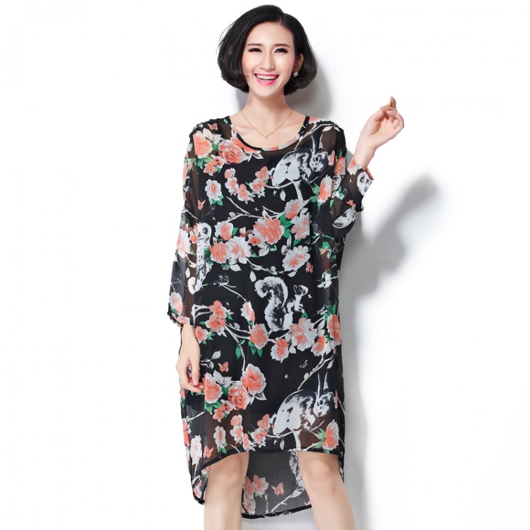 TE7397HSJP Abito di grandi dimensioni in chiffon con stampa trendy alla moda europea