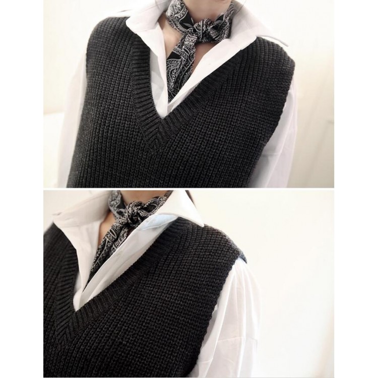 TE8850YLG Abito in maglia pullover senza maniche con scollo a V in stile preppy