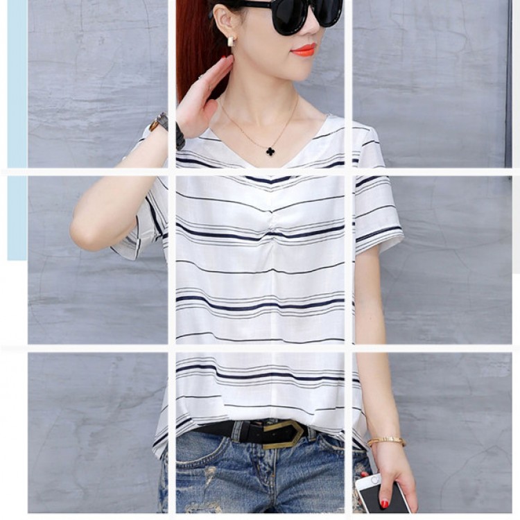 T-shirt ampia a righe a maniche corte con scollo a V del 1948