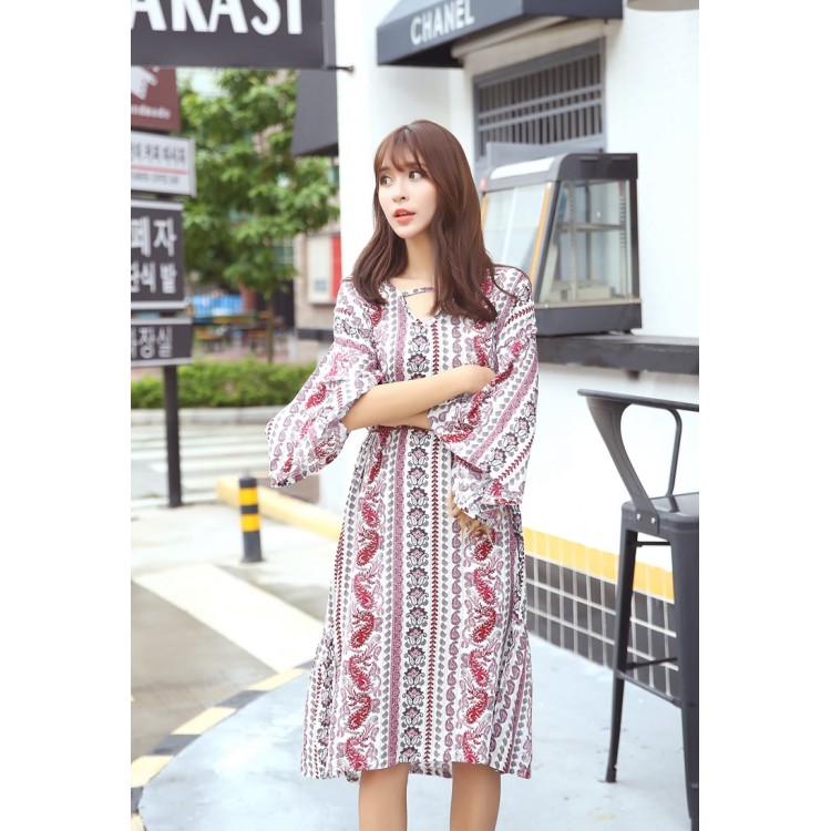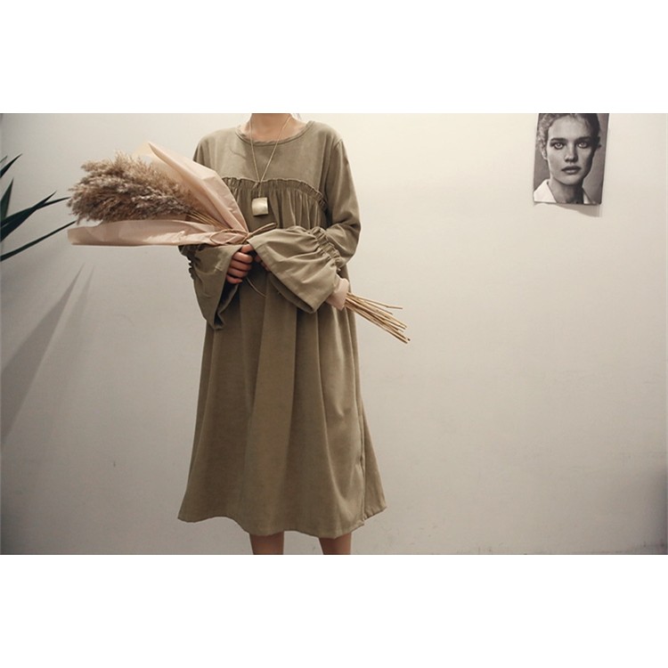 TE1540GJWL Abito sciolto con maniche a tromba alla moda coreana