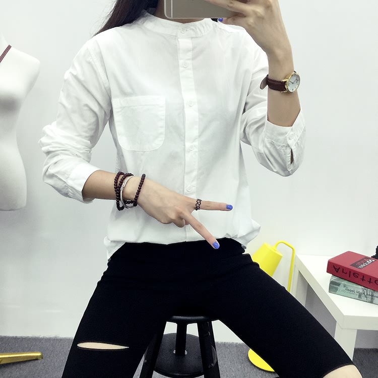 TE1630MLCS Camicia bianca con tasche e colletto rialzato