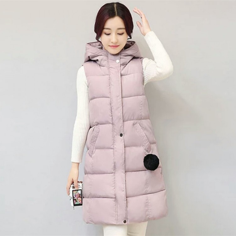 Piumino lungo in piumino con palline di pelo con cappuccio 1655 piume
