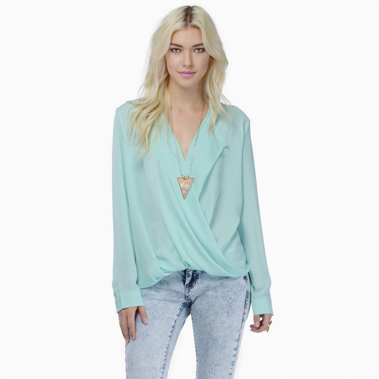 Camicia in chiffon drappeggiato con revers ampio e croce tinta unita euramerican