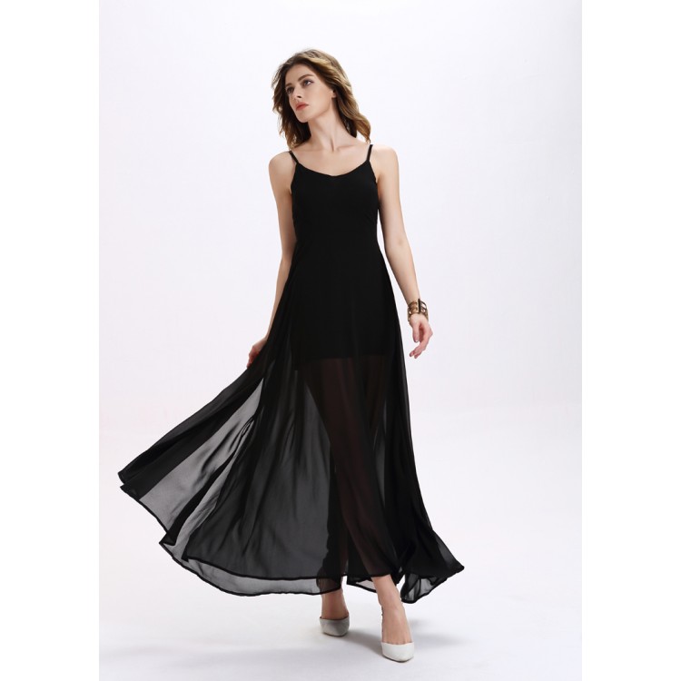 TE2126OMSS Abito in gallus irregolare diviso in chiffon sexy senza schienale alla moda europea