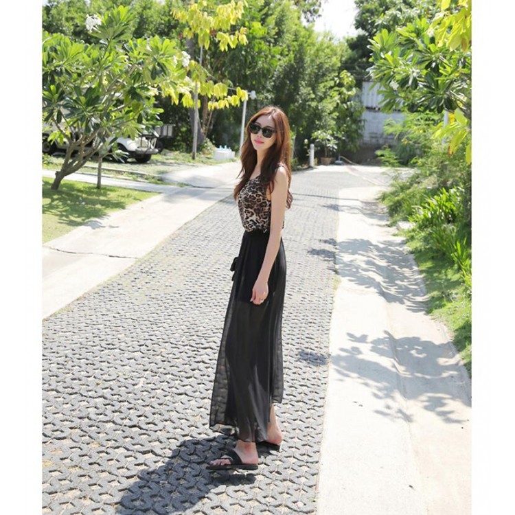 TE6443YZS Gonna lunga sexy in chiffon moda europea con gilet leopardato
