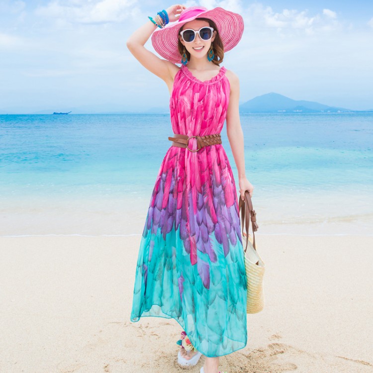 TE8655MSJ Abito da spiaggia in chiffon con stampa Bohemia sfumata