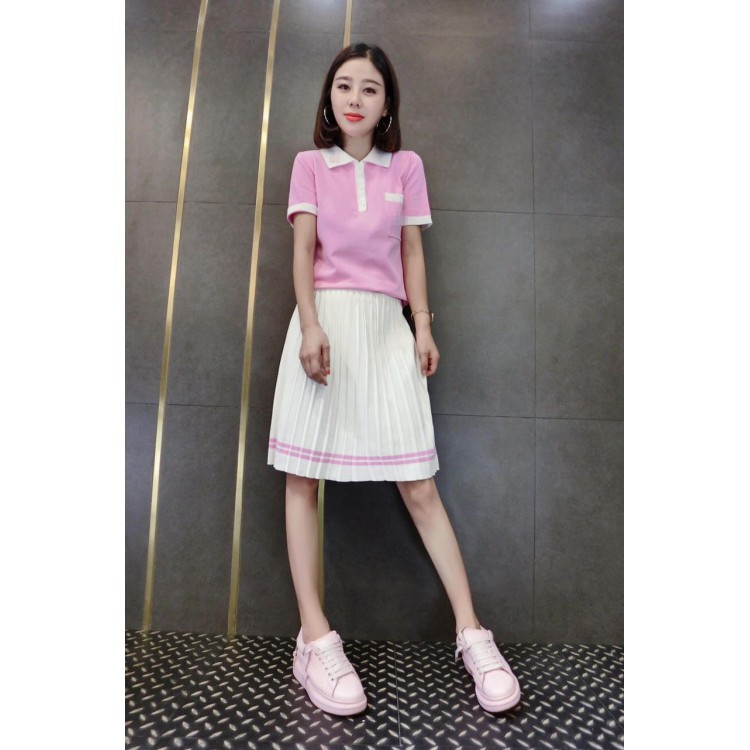 8920 polo in stile preppy con gonna plissettata