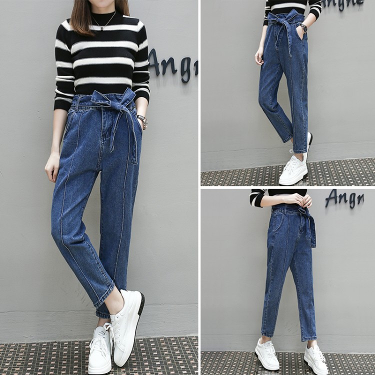 6396 jeans da donna di grandi dimensioni con allacciatura ampia in vita e piedi sottili