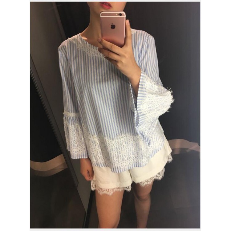 Camicia in pizzo cigliato a strisce verticali blu e bianche 801