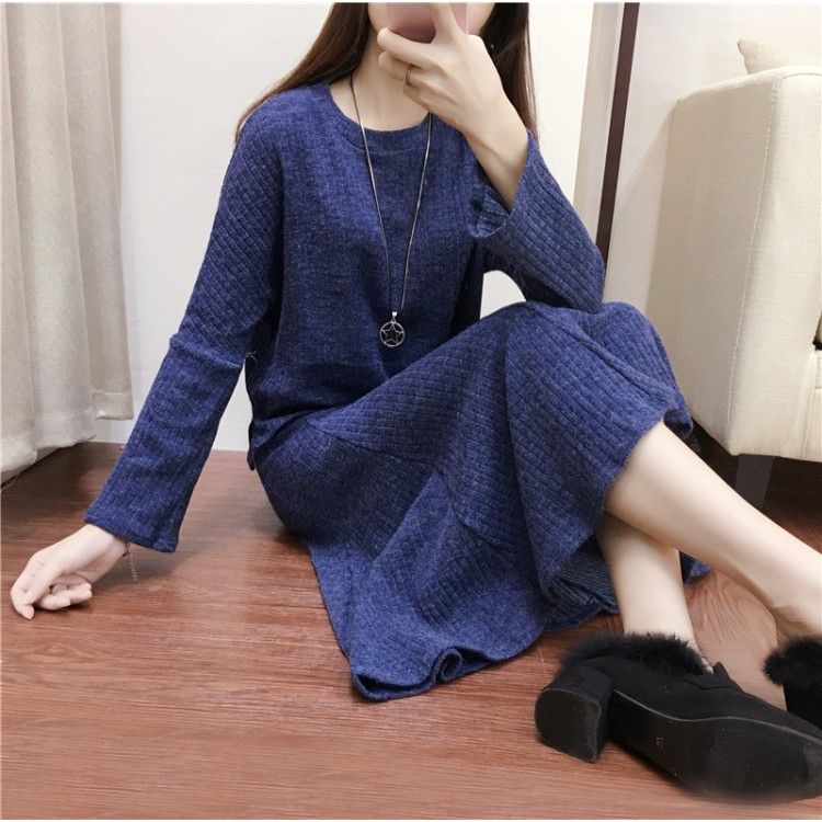 TE6515YZS Abito in denim pullover ampio con scollo a V e maniche lunghe
