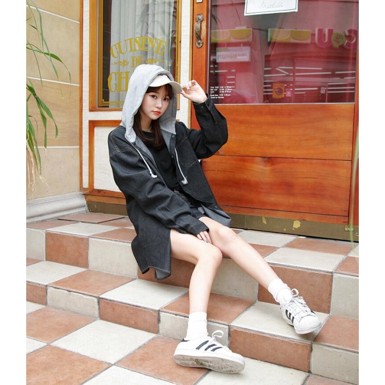TE3086YZS Cappotto in denim con cappuccio e allacciatura tascabile
