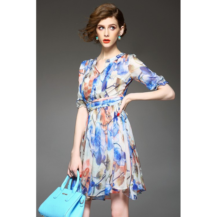 TE9647LLYG Abito slim in seta con stampa vintage divisa e scollo tondo nuovo stile estivo