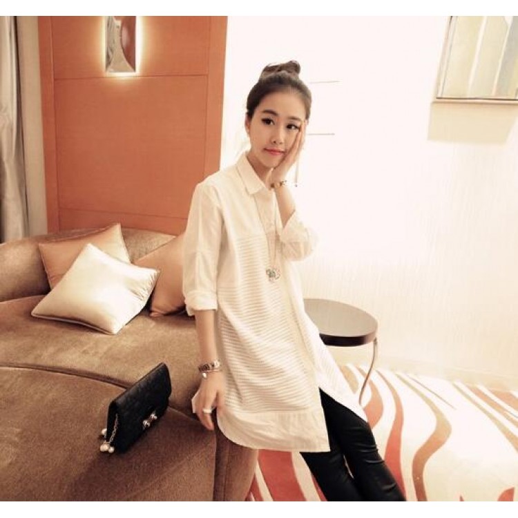 TE8019QPG Camicetta lunga bianca fresca alla moda primaverile