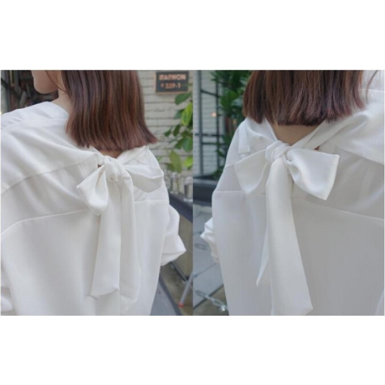 TE6803YWQS Camicia bianca alla moda con scollo a V e due lati con fiocco ampio