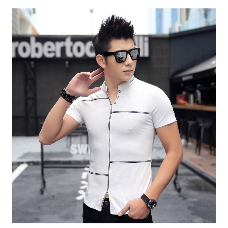TE3708KDF T-shirt da uomo alla moda coreana con colletto alla coreana