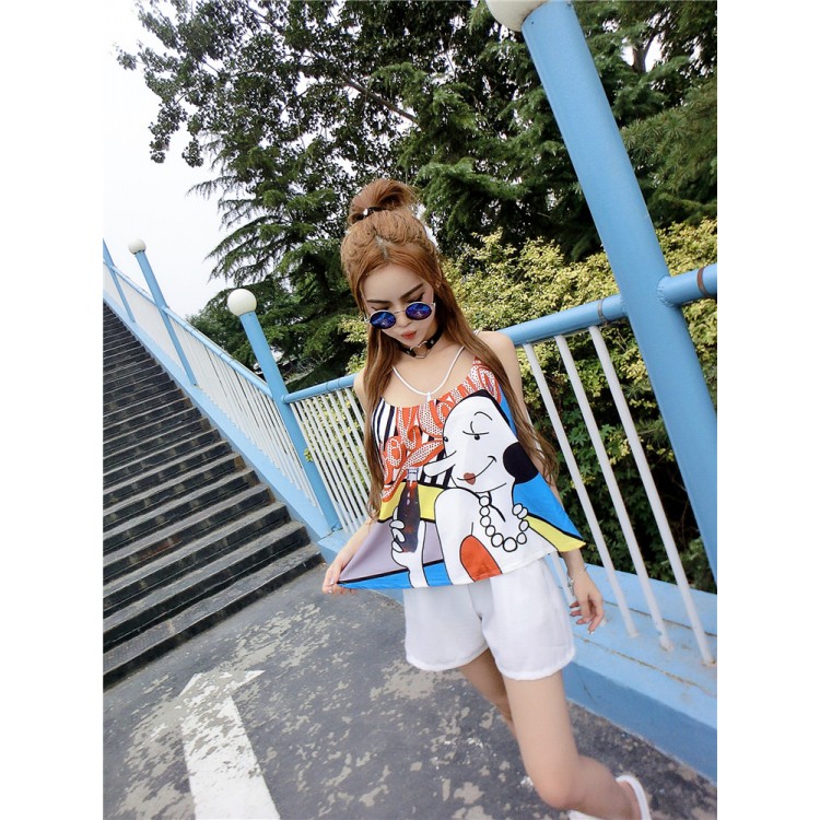 TE8307SSGD Top sexy con spalle scoperte con stampa dolce e pantaloncini jolly