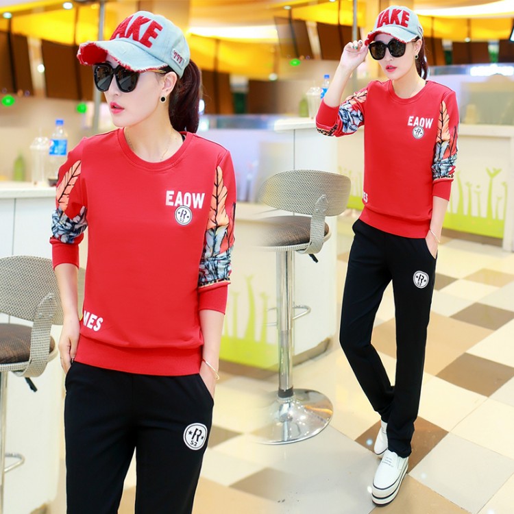 248 tuta sportiva casual con stampa slim a maniche lunghe e girocollo