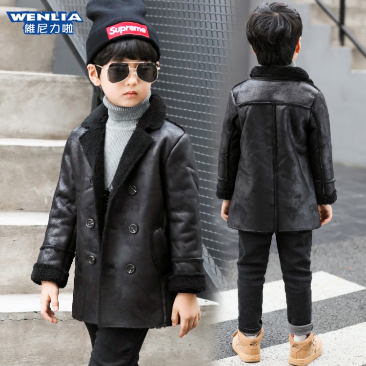 7302 Giacca invernale da bambino in pelle calda spessa doppiopetto con risvolto