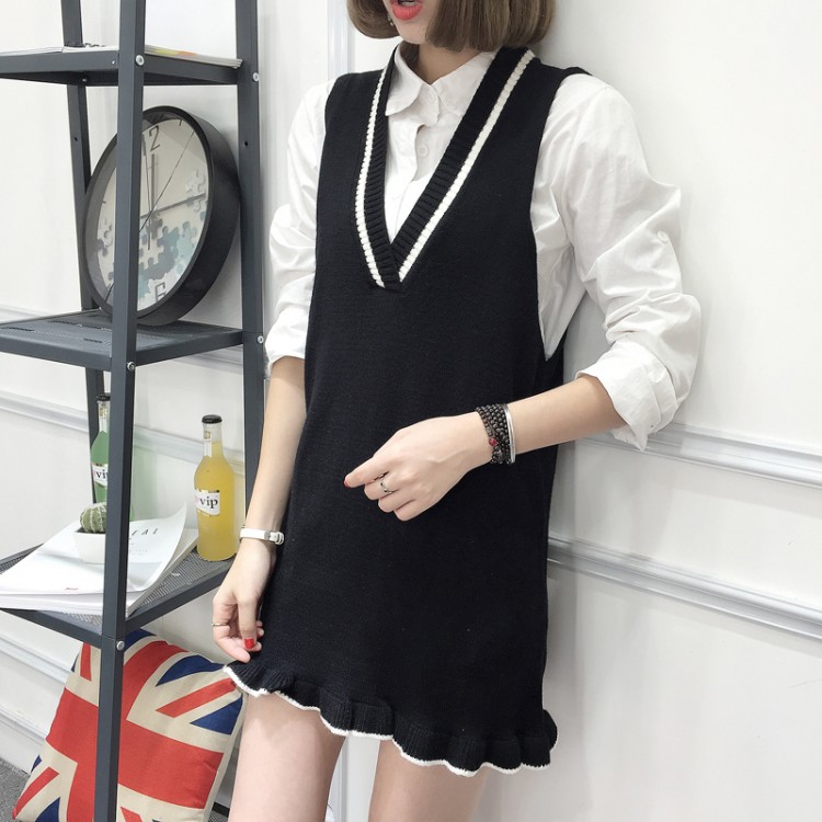 8098 Abito con fondo gilet con scollo a V lavorato a maglia