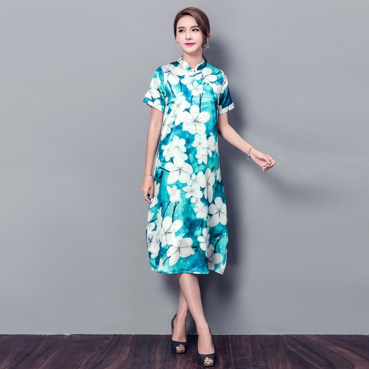3551 Cheongsam migliorato con stampa di abiti larghi e larghi con colletto rialzato in stile cinese