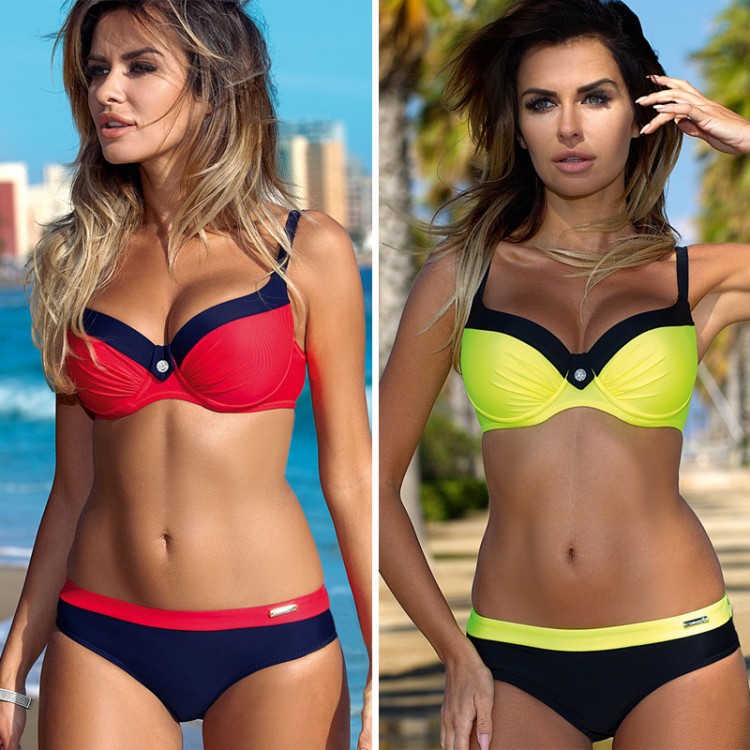 8983 Costume da bagno bikini con cuciture in cristalli spaccati