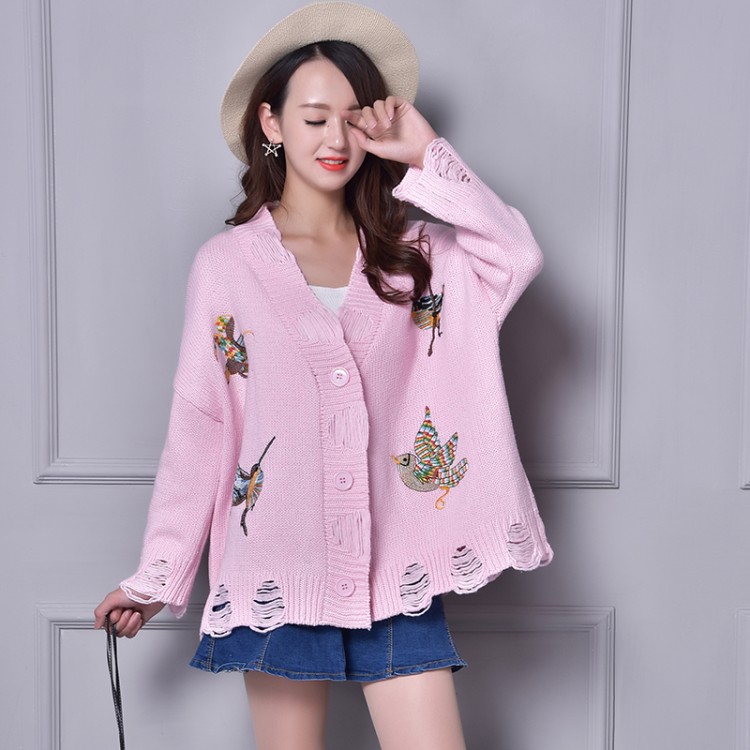 6048 maglione cardigan a maniche lunghe sciolto con ricamo scollo a V primaverile e autunnale