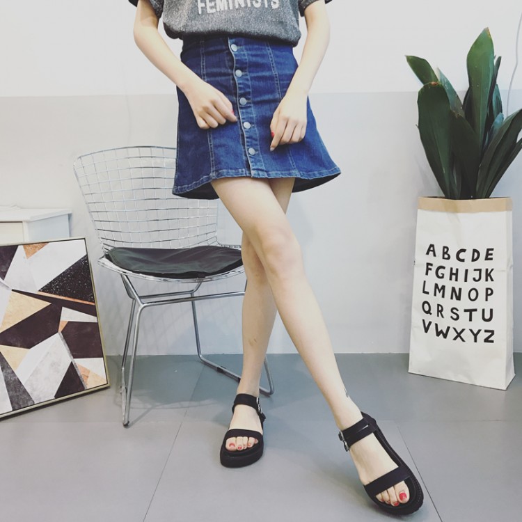 Sandali smorzati neri con fibbia dal fondo spesso retrò