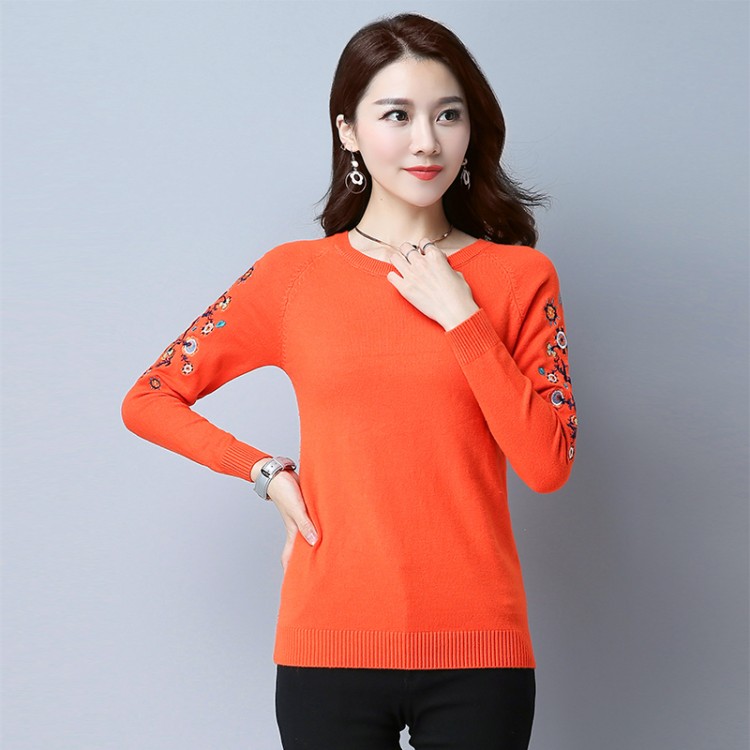 5209 maglione autunno e inverno ricamato a maniche lunghe con supporto corto