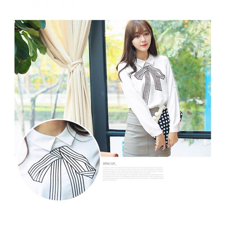 TE9958HYS Camicia bianca slim stile coreano con ricami vintage