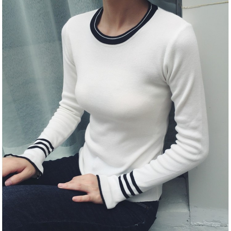 6139 Maglione da donna con maniche a tromba a righe sottili alla moda coreana