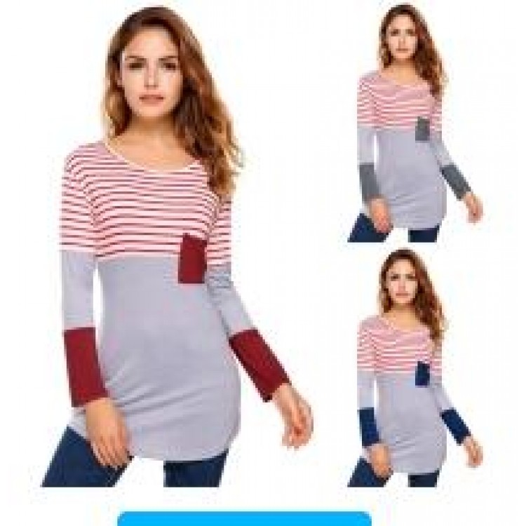 9838 T-shirt irregolare a maniche lunghe con righe abbinate ai colori alla moda