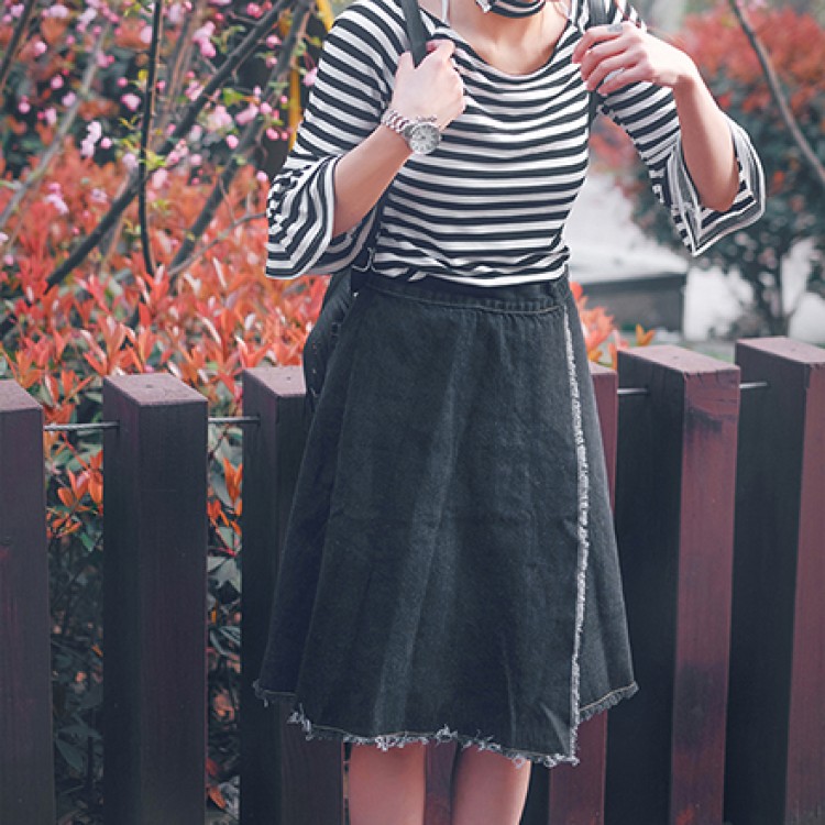 995 Gonna in denim con fibbia pieghevole in un unico pezzo con abbottonatura obliqua